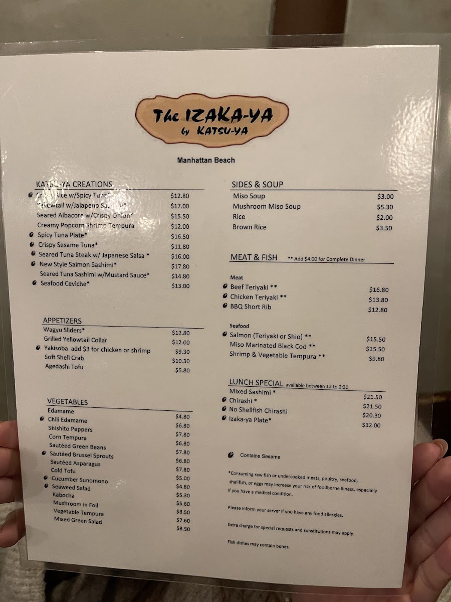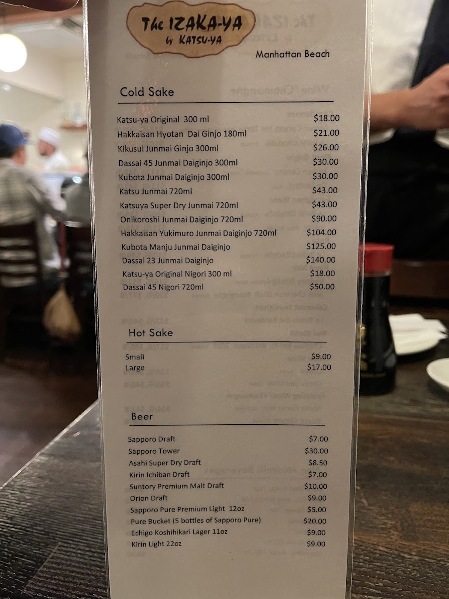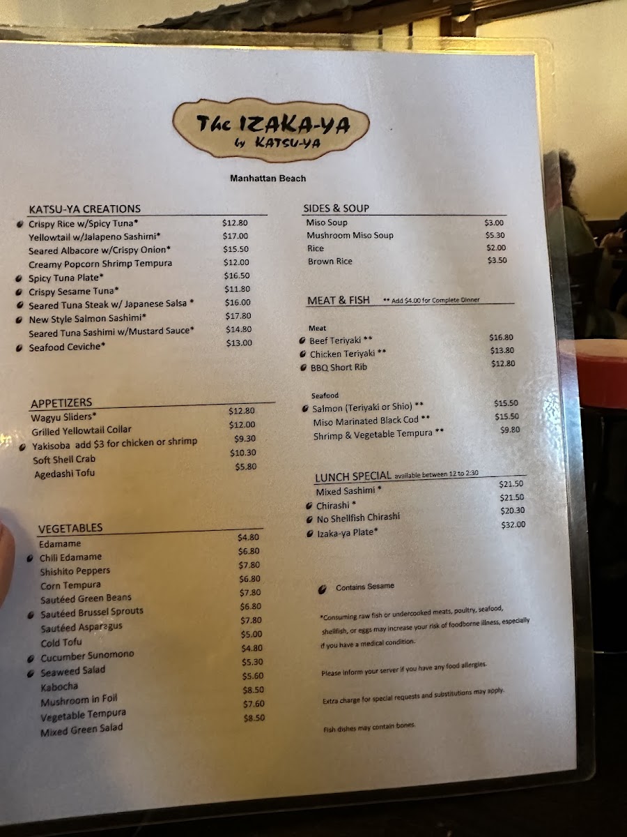 The Izaka-ya by Katsu-ya Manhattan Beach Menu