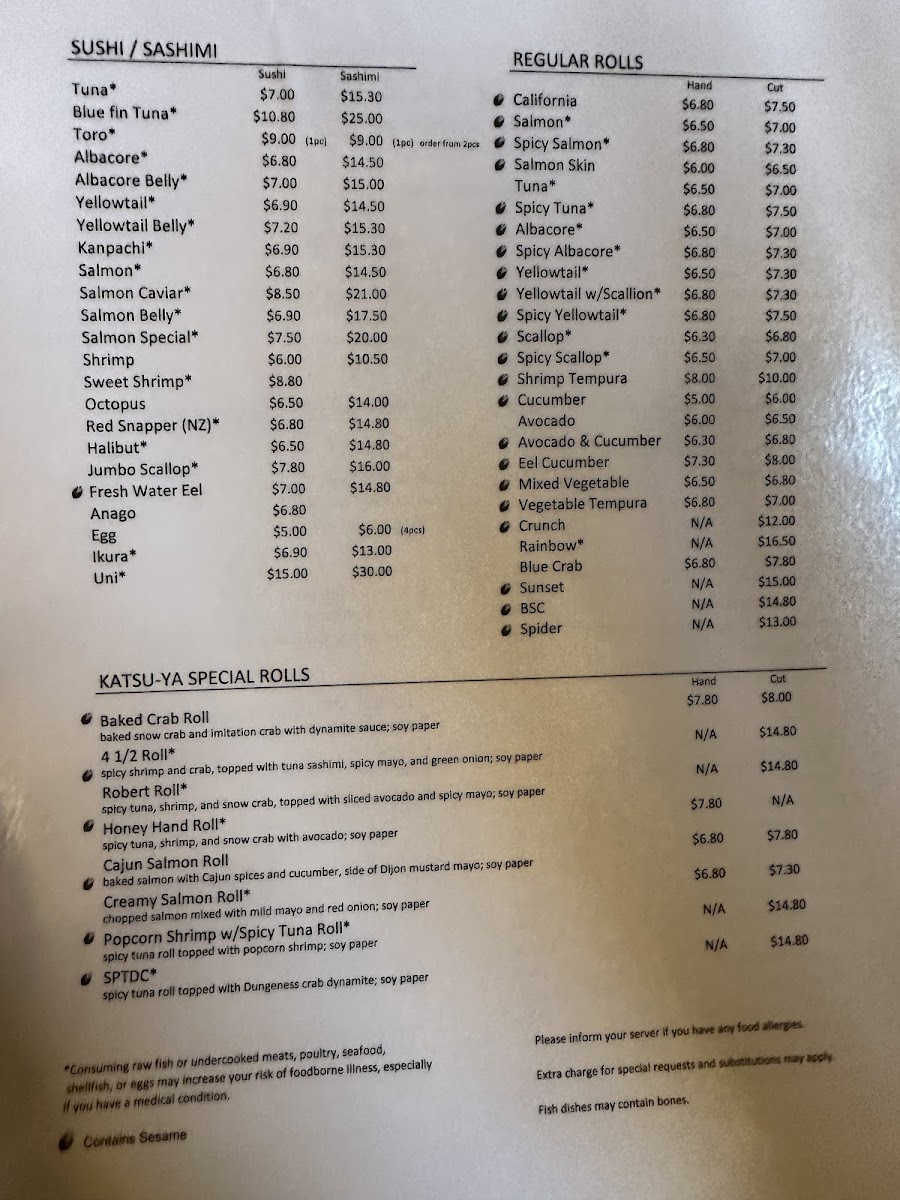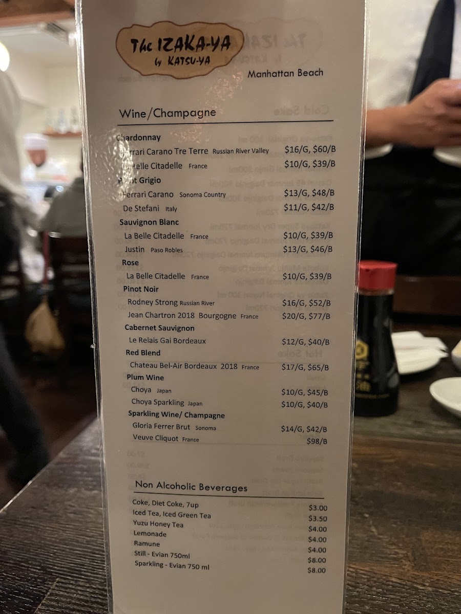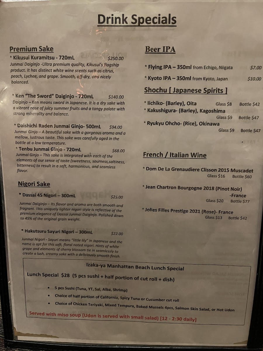 The Izaka-ya by Katsu-ya Manhattan Beach Menu